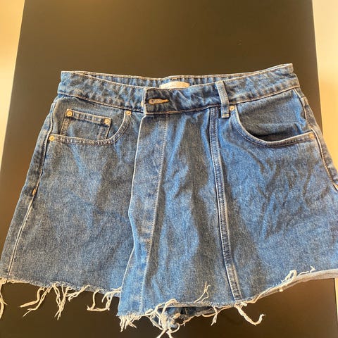 Gina Tricot Perfect Jeans skjørt str 36. Lengde 34 cm. Skjørtet er i denimstil med stikklommer foran og klafflommer på sidene og bak. Rå kant nederst gir et uformelt uttrykk. Laget i bomull fra Good Collection-serien.