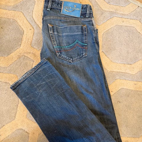 Selger et par originale Jacob Cohen Nick jeans i klassisk blå denim. Nick-modellen har slim/regular passform med rette ben og komfortabel stretch, kjent for høy kvalitet og svært god passform.