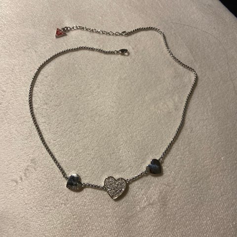 Selger ubrukt Guess smykke for dame i stål med "krystall". Smykket har lenke i metall og anheng med dekorative krystaller. Leveres med Guess-pose som vist på bildene. Egnet som tilbehør til både hverdags- og penklær.