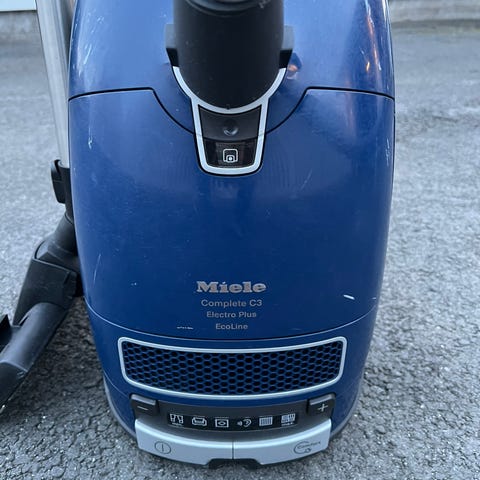 Selger en solid og effektiv Panasonic støvsuger, modell MC-E7011. Dette er en kraftig maskin på 1500W som suger veldig godt, langt bedre enn mange av de nyere, strømsparende modellene.