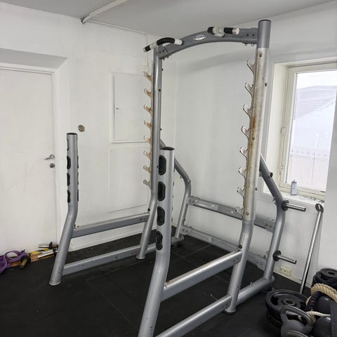 Squat rack og benk + olympisk stang. 97,5 kilo medfølger