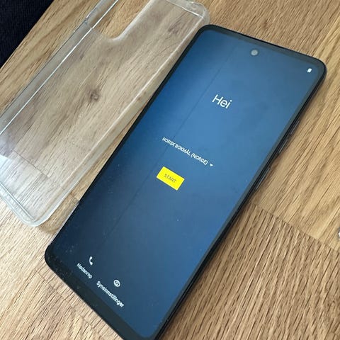 Selger en Motorola-smarttelefon i god stand. Telefonen fungerer som den skal og har hel, blank skjerm uten sprekker. Bakdekselet er også helt, med normal bruksslitasje.