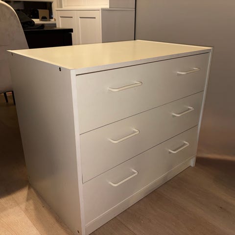 Skuffeseksjon/kommode med hjul fra IKEA. Foliert med valnøtt . I visse lys kan man se luftbobler, men det er egentlig kun synlig hvis man ser nedenfra og opp (se bilder)