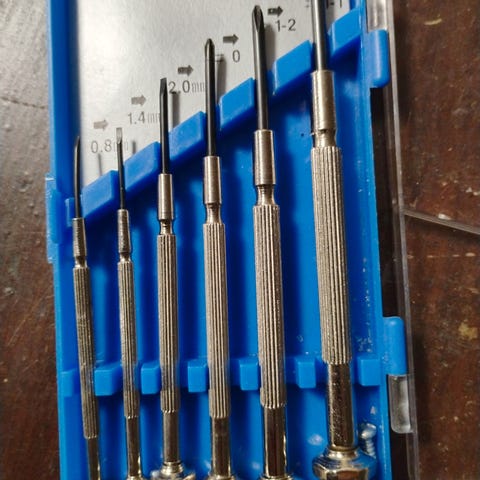 Plastkasse fylt med et variert utvalg skrutrekkere