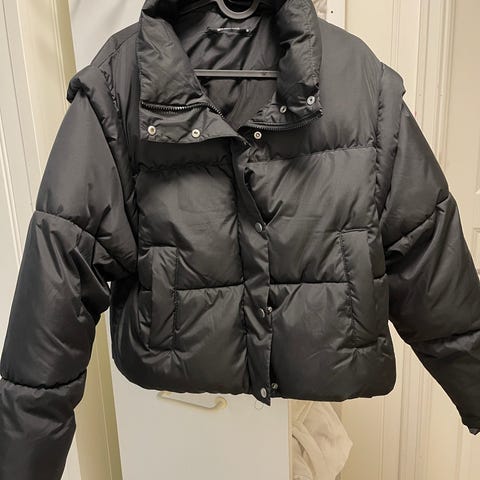 Vatert jakke selges. Den er svart, men vil si den ser grønn ut i enkelte lys. Veldig lite brukt.