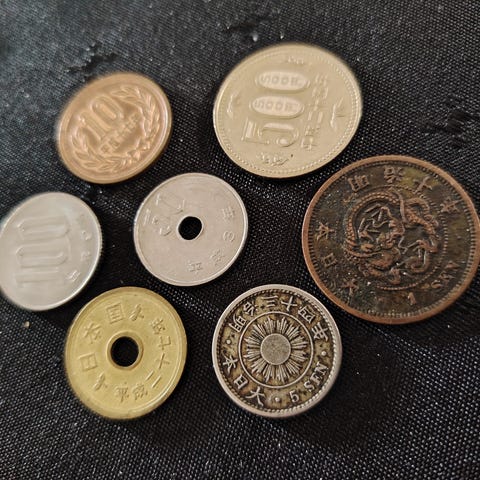 Lot med 16 mynter i kv0 fra Japan, Frankrike og Nederland