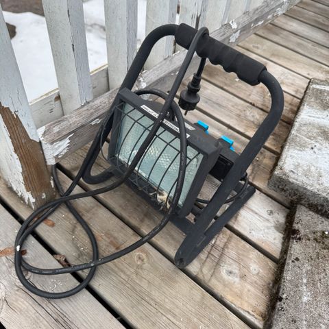LED arbeidslampe i svart og gul farge. Lampen har rektangulært lampehode med flere LED-dioder og håndtak/krok på toppen for oppheng. Egner seg som arbeidslys eller nødbelysning i garasje, bod, camping eller lignende. Lampen er kompakt og bærbar, og kan plasseres stående på underlag eller henges opp ved behov.