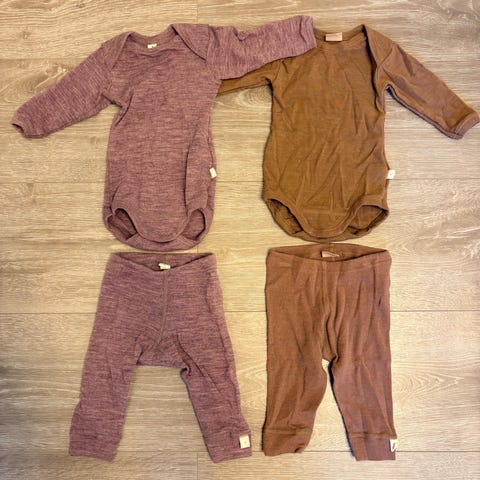 Hm adorables ullsett i str 86 er nesten ikke brukt. Kan justere livet på ullbuksen, se bilde. Alt er kjøpt nytt av oss og brukt av ett barn. Selges som det er.