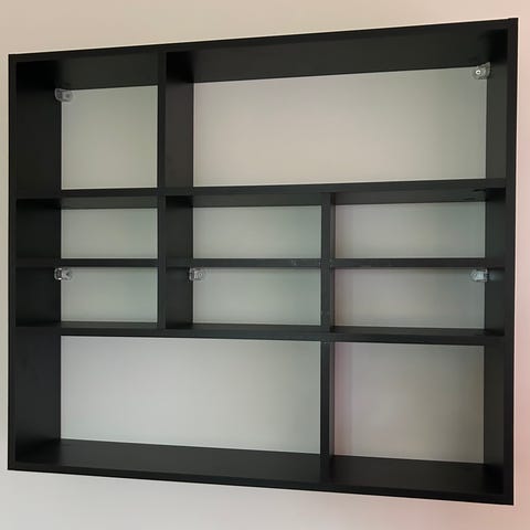 Hyllen har derfor aldri blitt hengt opp på veggen og selges nå videre. Helt fin og ny. Solid konstruksjon.
