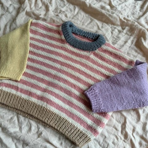 Ullgensere til jente i størrelse 116/ 122 Genserne er strikket i myk ull og har flerfarget design. Én genser har hvit og lys rosa fargeblokk, den andre har oransje, gul og brunfargede felt. Begge har rund hals icord avfelling da de blir letter å ta over hodet med ribbestrikk nederst på bol og ermer for bedre passform. Passer til hverdagsbruk i kjøligere vær. Blandings garn lett blanding med alpakka, mohair, merino og nylon. Altså forskjellige garn på hver genser.Vaskes for hånd eller ullvugge. Orange er kanskje 122 i str.