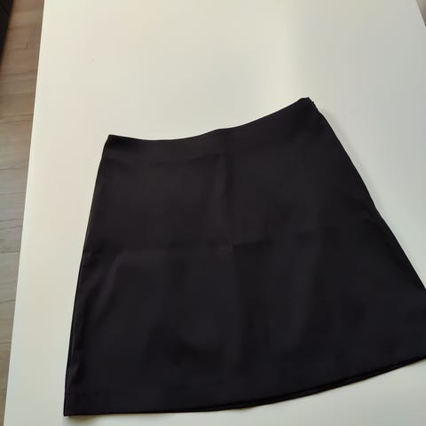 Soaked in Luxury skjørt i A-fasong for dame. Skjørtet er i størrelse S og er laget i polyester. Fargen er svart. Enkel, rett modell med kort lengde, egnet til både hverdags- og kontorbruk avhengig av styling. Jeg skulle gjerne brukt dette mer, men dessverre så er ikke dette riktig passform til meg. Som det ene bilde viser så er det en løs tråd helt øverst, denne skal fint fikses av de som kan sånt. Ordinær pris 799,-