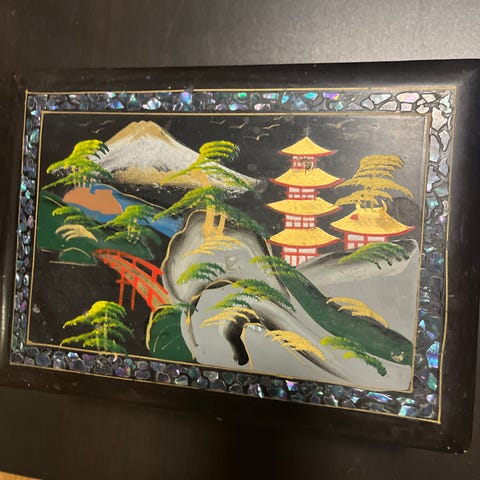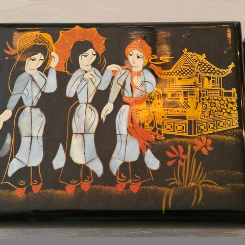 Japansk art deco smykke skrin, med uthevet mønster av fugl og blomster🤗