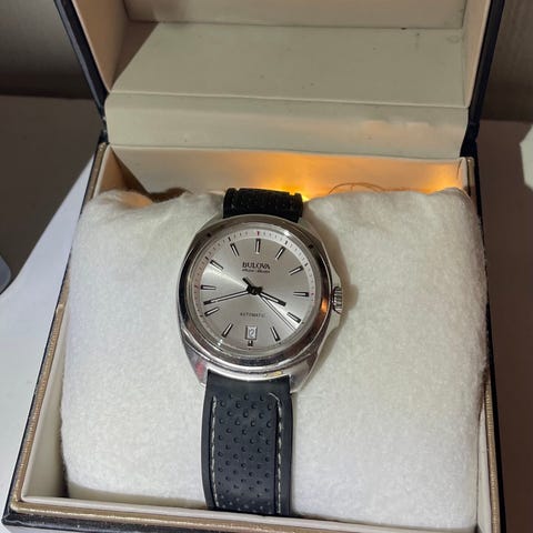 Bulova 46mm herreklokke i full gun metall, stor rund urkasse. Klokken har mørk urskive med flere delskiver og markerte timemarkeringer, samt kontrastfargede visere. Urkassen og lenken er i metall med foldespenne. Baksiden av urkassen er merket med Bulova-logo og Precisionist-serie. Egnet som armbåndsur til herre til daglig bruk eller mer formelle anledninger.