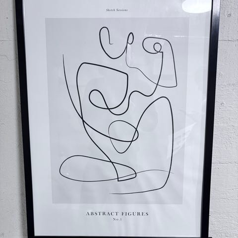 Henri Matisse plakat med motiv i grå toner, innrammet i enkel, mørk ramme.