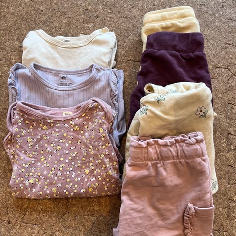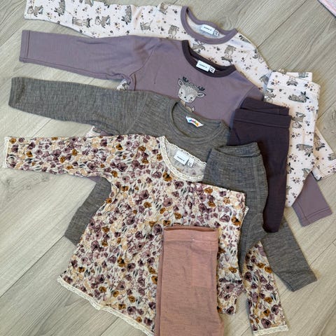Ull klespakke brukt av ei jente. Ull ytterst, bambus innerst: