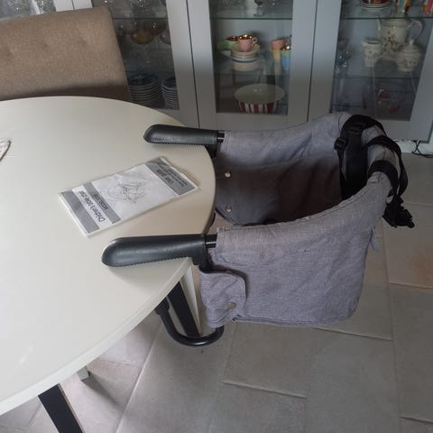 Selger pent brukt og veldig praktisk stol til å henge på bord. Perfekt for både hjemme og på reise :)