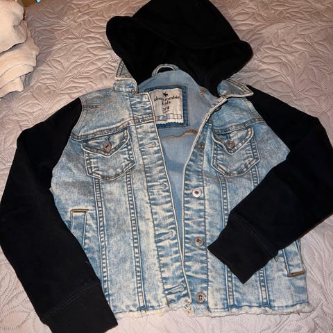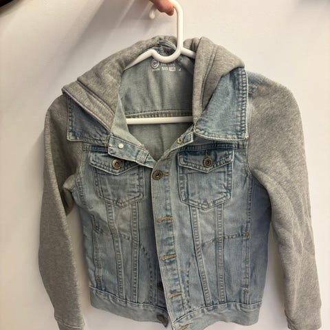 Kul jakke i bomull/denim. En favoritt på våren, dessverre liten nå. Passer 8-10 år. Lab Industries Denim Wear