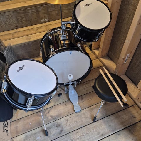 Vi er et korps som har litt for mange Trommesett så vi prøver oss her