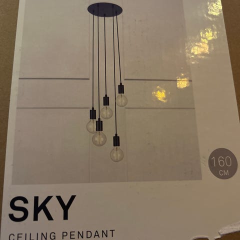 Selger denne taklampen da den ikke passer inn i stilen vi har på huset vårt. Den er aldri blitt montert opp i vårt eie. Kjøpte den brukt av bekjente, selges derfor videre.