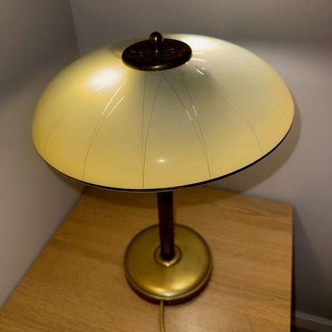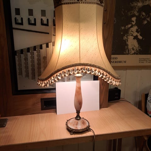 Lampen er fin, men flekk nederst se bilde. Den har kontakt uten jording