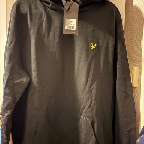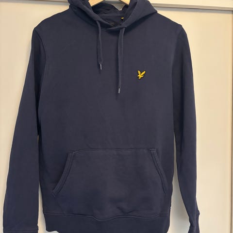 Lyle & Scott hettegenser for herre i størrelse M. Genseren er grå og laget av bomull. Modellen har justerbar hette med snøring, ribbestrikkede mansjetter og linning, samt kengurulomme foran. Brystet har Lyle & Scott-logo. Passer til hverdagsbruk og fritid.