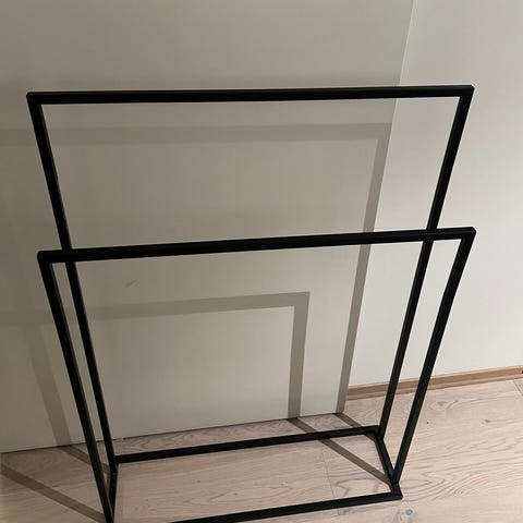 Sober håndklestativ kjøpt for noen år siden hos Skeidar. Glassplate nederst, ingen bruksmerker.