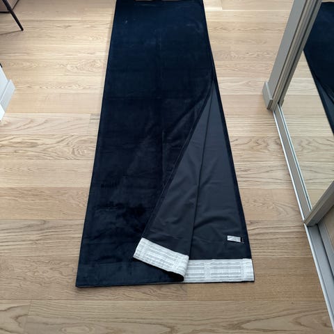 Vi endret interiøret på soverommet og bl.a. skiftet vi gardiner. Derfor tilbyr vi her 4 mørkeblå velurgardiner av merke Kid / Hemtex i meget god stand for tilsammen 1000 kroner.