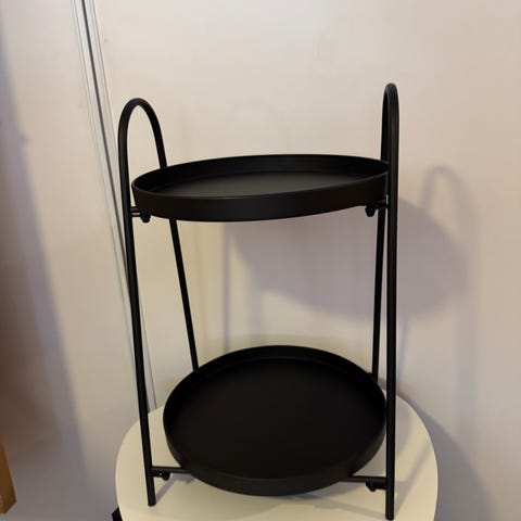 Selger pent brukt sort sidebord i metall. Lite bruksmerker oppå topplaten.