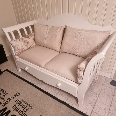Vi selger også mørkegrå Nockeby Ikea sofa, 2 skjenker Baxter fra Home and Cottage, Dovre køyeseng og familiekøye fra Bohus, spisebord og sittebenker i seder til utendørs bruk, og Vallavik kontinental dobbeltseng fra IKEA.