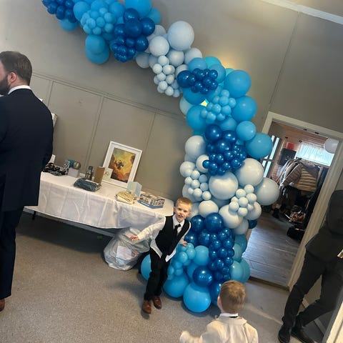 Selger denne nydelige ballongbuen for babyshower. Ny pris er 2600,-.