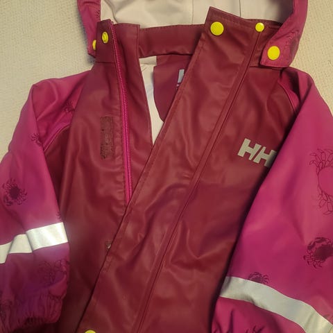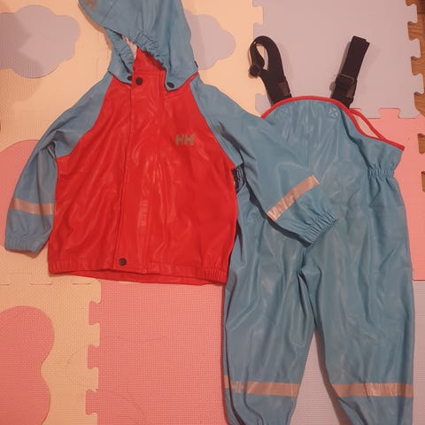 Fint regntøy fra Helly Hansen i god stand, ingen hull. Str 86