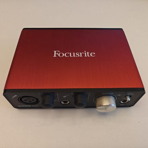Focusrite Scarlett 6i6 lydkort med USB-tilkobling.