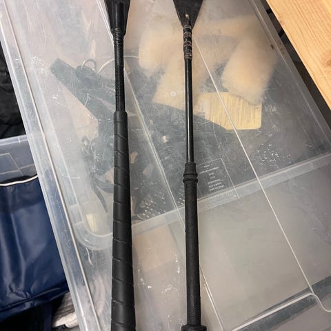 Navneskilt til å ha på boksdøren og pisk selges samlet 50kr