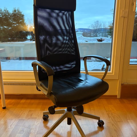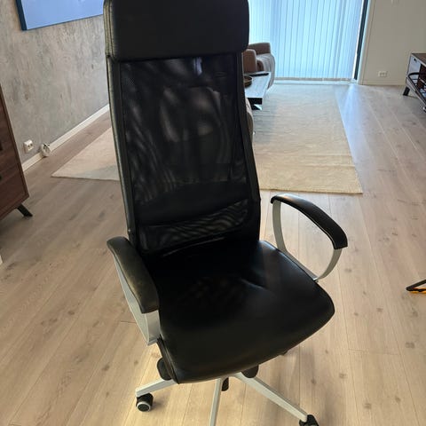 Godt bruktmen god stol, synlig slitasje i stoff fra vanlig bruk. Ingen skader, fungerer som den skal.
