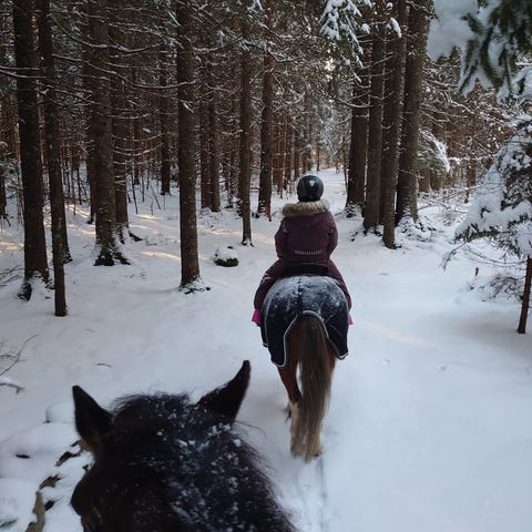 Har du lyst til og ri på tur i andebus idylliske skoger? Jeg tar deg med på tur og kan tilpasse ditt nivå, du kan sale av og på hesten selv eller jeg kan gjøre det. Det er en ypperlig anledning til og få kose, stelle, og ri hest! For mindre barn kan foreldre gå ved siden av eller så kan jeg leie istedetfor og ri.