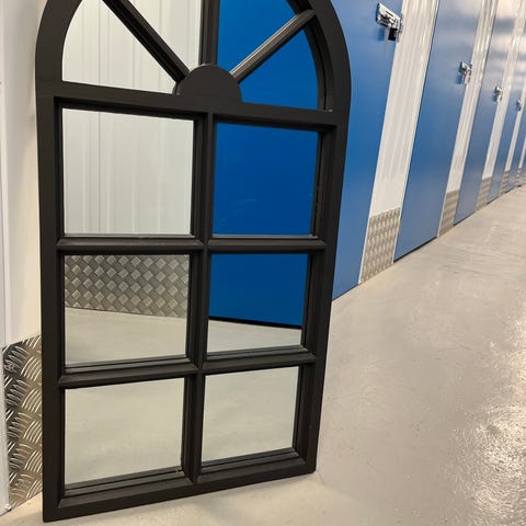 IKEA speil veggspeil i klart glass. Rektangulært speil med bølget overkant og vaierfester i metall. Egnet som veggspeil i gang, soverom eller andre rom der man ønsker et enkelt speil på veggen.