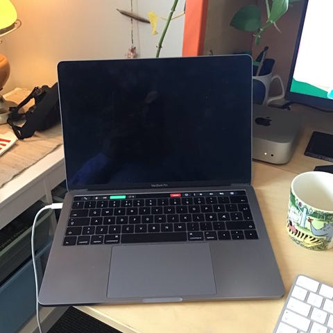 Apple MacBook Pro 13" bærbar PC i sølvfarge. 512 GB Larging.