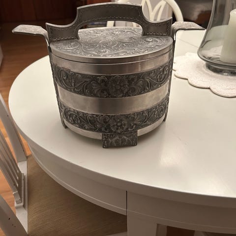 Antikk kjøkkenvekt og kakeutstikkere metall
