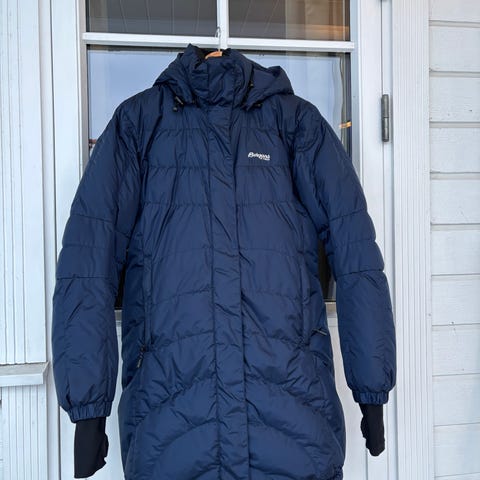 Bergans Oslo Down Hybrid Long Jacket i størrelse M. Dette er en varm og lett dunjakke med hybridkonstruksjon: dun i kroppen for god isolasjon og mykere, mer fleksible materialer (70% ull) i ermene for bedre bevegelighet. Perfekt til kalde vinterdager og til hverdagsbruk.
