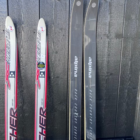 To stk med langrennski. Atomic og Alpinia. Selges for 50kr stk det inkluderer staver. Atomic skiene er noe lengre enn Alpinia. Ikke vært i bruk de siste årene.