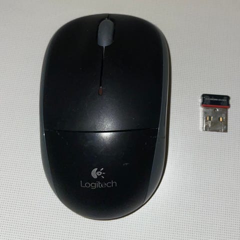 Logitech Cordless Optical Mouse datamus i svart. Trådløs optisk mus med rullehjul og to hovedknapper. Undersiden har optisk sensor, connect-knapp for tilkobling og glideflater. Egnet til bruk med stasjonær PC eller bærbar PC som støtter denne typen trådløs mus, for kontorarbeid, nettbruk og generell databruk.