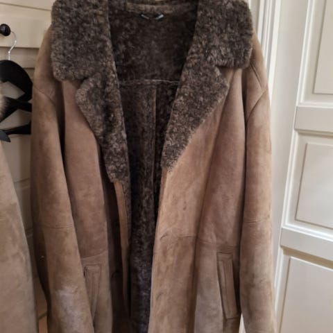 Pent brukt herrejakke i saueskinn vurderes solgt til rett pris.