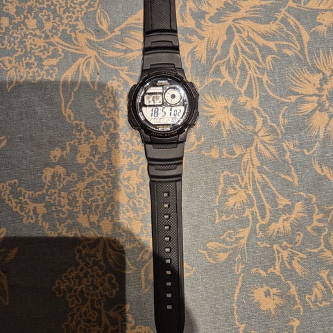 Casio herreklokke med analog visning og blå urskive. Klokken har rund kasse og stållenke med foldespenne. Datovindu er plassert ved klokken tre. Baklokket er i metall med inngravert informasjon om modellen. Egnet som hverdagsklokke for herre.