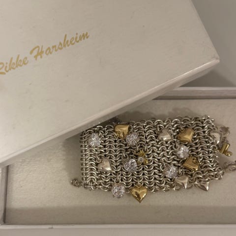 Pent brukt strikke armbånd, i sølv med 14 karat gull hjerter, med Cubik Zirkonia. Nytt koster: 51 500,-