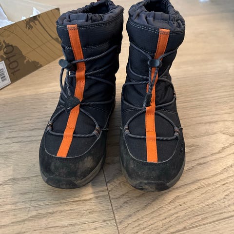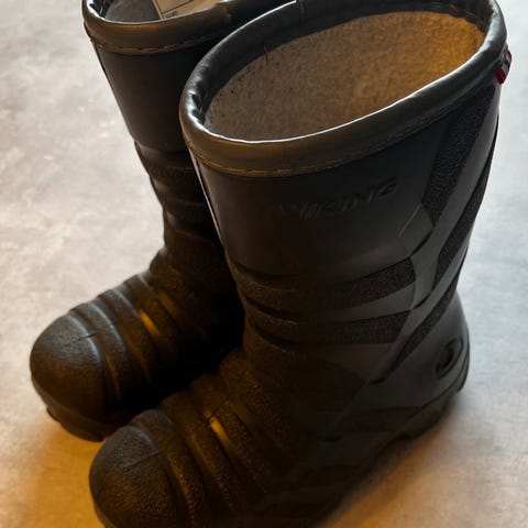 Viking vintersko for barn i størrelse 29. Unisex-modell i svart farge. Skoene har høy skaft med snøring/stramming øverst og grov såle med godt mønster. Egnet som varme og robuste vintersko til bruk i kaldt og vått vær.