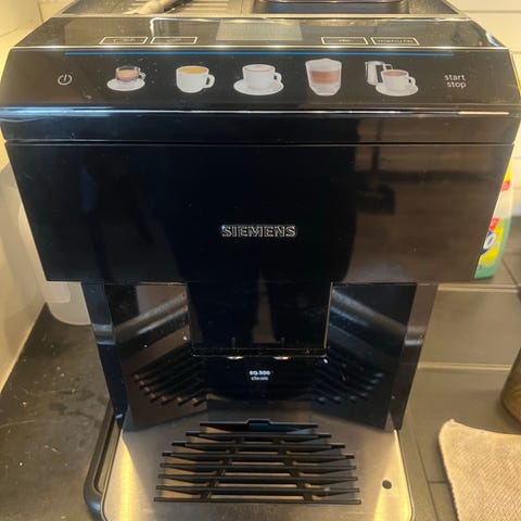 Siemens TE503201RW helautomatisk kaffemaskin i svart utførelse.