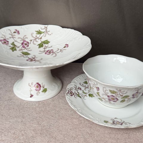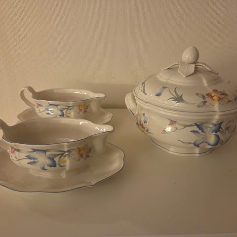 sausenebb med fat fra Rosenthals "Maria" porselensserie, med "Bjørnebær"