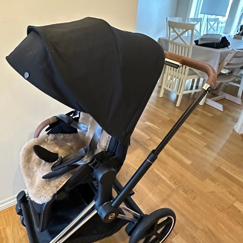 Pent brukt CYBEX e-priam. Kjøpt ny november 2024, brukt i noen få måneder før overgang til annen vogn. Veldig fornøyd. Hel og pen uten merker eller slitasjer. Motor som drar i oppoverbakker og bremser i nedoverbakker. Vognen er sort med rosegull understell og brunt skinn. Flere bilder kommer. Koppholder følger med. Både bassinet del og sportsdel.