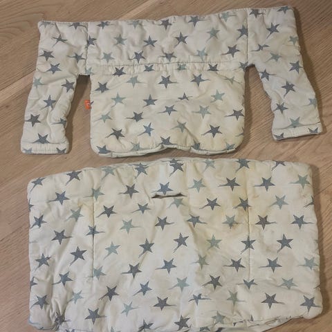 Tripp Trapp pute i rosa revemønster. Settet består av polstret bunn- og sideinnlegg som gir ekstra komfort i Tripp Trapp stol. Vanntett og kan vaskes i maskin. Noe slitasje på søm kan forekomme, se bilder for detaljert tilstand.
