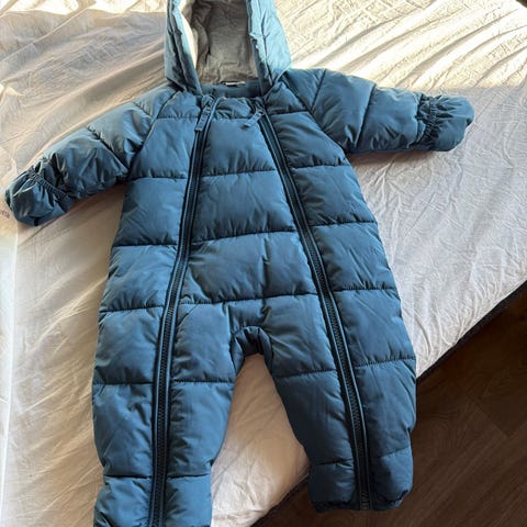 H&M kjeledress for baby i størrelse 62. Kjeledressen er grønn og laget i polyester. Innsiden har mykt, pelslignende fôr. Modellen har hette og glidelås foran. Passer til unisex babybruk, for eksempel i vogn eller bilsete på kjølige dager.
